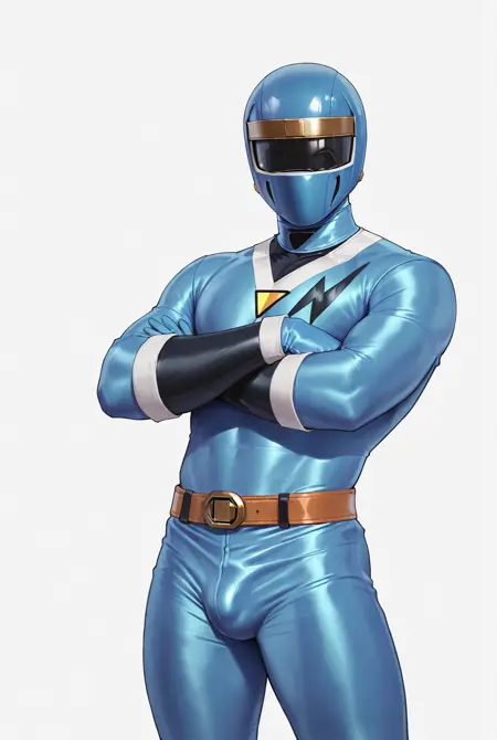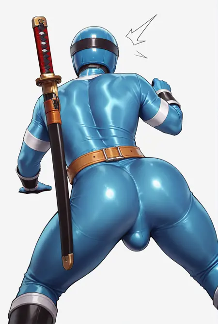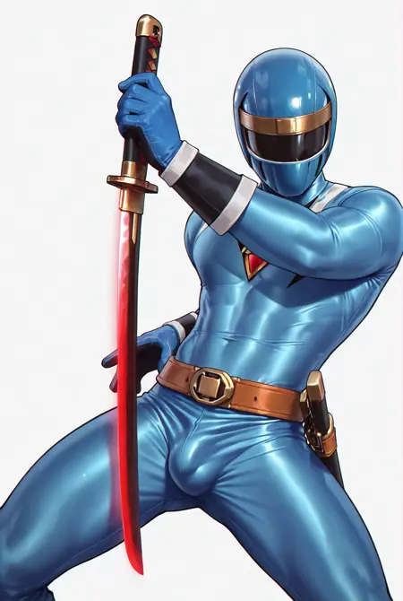 n1nja blue, helmet, belt, bodysuit, red gloves, red bodysuit, mask