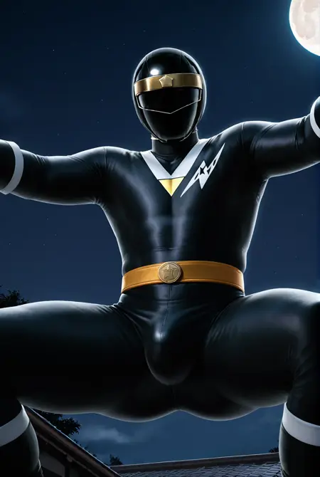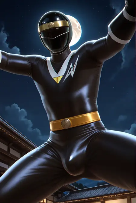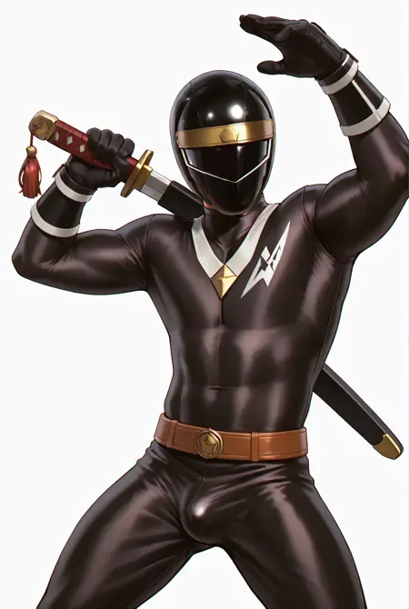 n1nja black, helmet, belt, bodysuit, black gloves, black bodysuit, mask