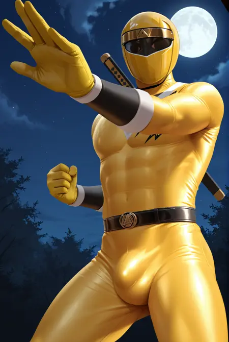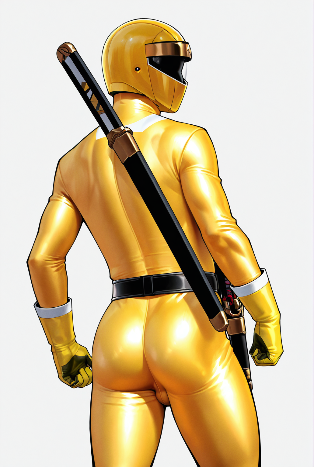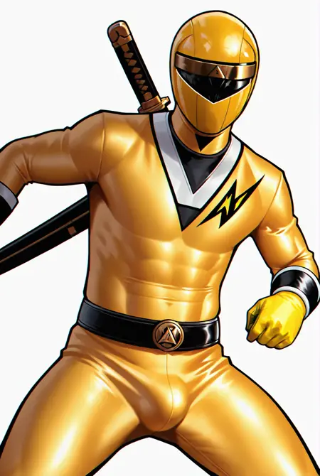 n1nja yellow, helmet, belt, bodysuit, yellow gloves, yellow bodysuit, mask