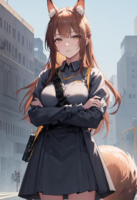 - The pruned character tags are animal ears, fox ears, long hair, brown hair, fox girl, animal ear fluff, tail, fox tail, brown eyes, breasts, large breasts. You can add them into prompts when core features (e.g. hair color) of character is not so stable.