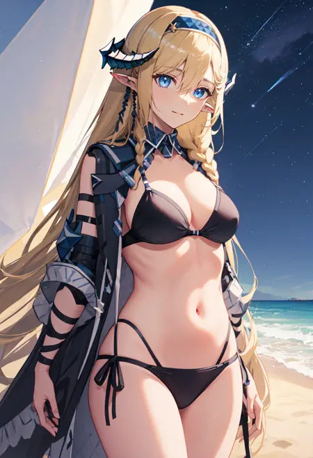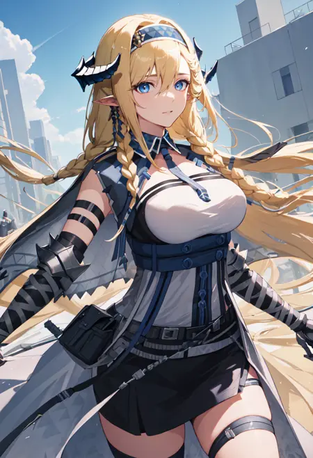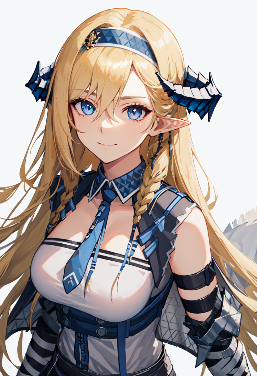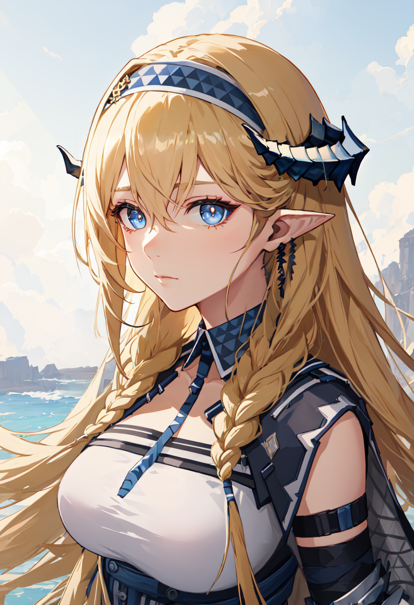 トリガー語はsaileach_arknights、削減されたタグはlong_hair, blonde_hair, horns, blue_eyes, pointy_ears, breasts, very_long_hair, hairband, large_breasts, blue_hairband, braid, dragon_horns, hair_between_eyes, twin_braidsです。ある特徴(例:髪の色)が安定しない場合、これらのタグをプロンプトに追加できます。