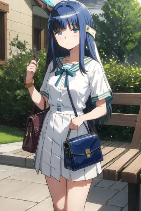 触发词为 nanami_yachiyo_puellamagimadokamagicasidestorymagiarecord,推荐标签为:best quality, masterpiece, highres, solo, {nanami_yachiyo_puellamagimadokamagicasidestorymagiarecord:1.15}, long_hair, blue_hair, blue_eyes, bangs, blush, blunt_bangs, magical_girl。