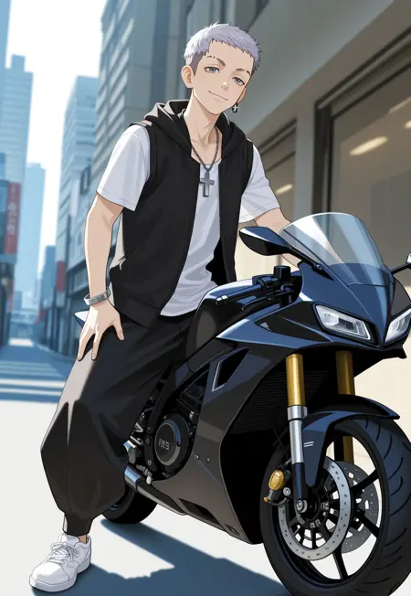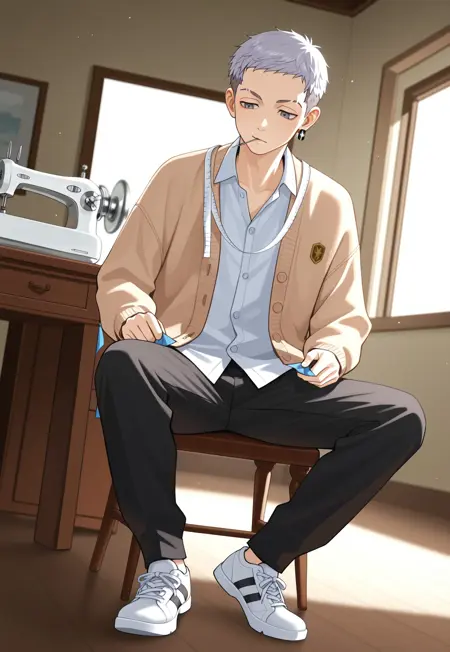 Got a good chuckle as I noticed how the outfit with the vest comes in two color schemes. He, the one delinquent who loves to sew and design clothes! Takashi "no one will notice the one outfit comes in two colors" Mitsuya, everyone!