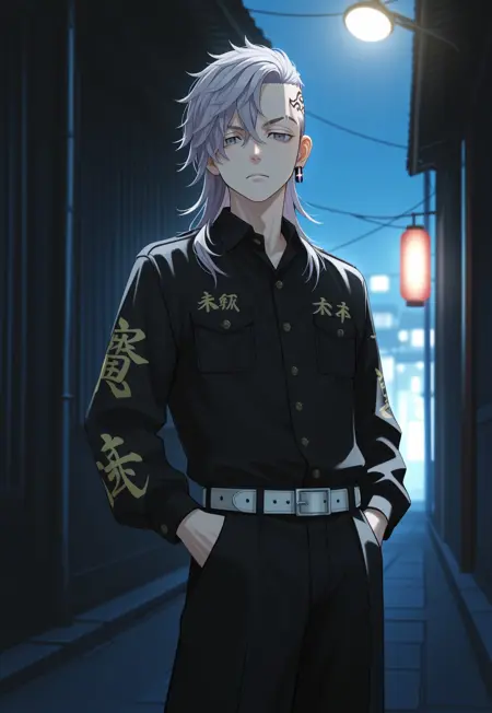 His sidecut with the tat appears on the wrong side. AI says "true twin dragons now!" Sometimes the kanji on the sleeves of the Toman uniform will get turned into dragons.