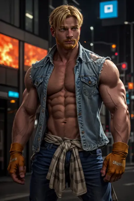 Streets of Rage 4 버전: 데님 셔츠, 흰색 민소매 티셔츠, 플란넬 자켓(허리에 두름), 헤드밴드, 데님 팬츠, 운동화, 손가락 없는 장갑