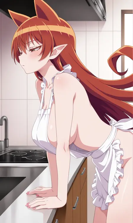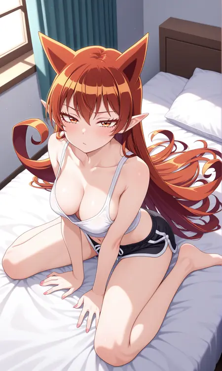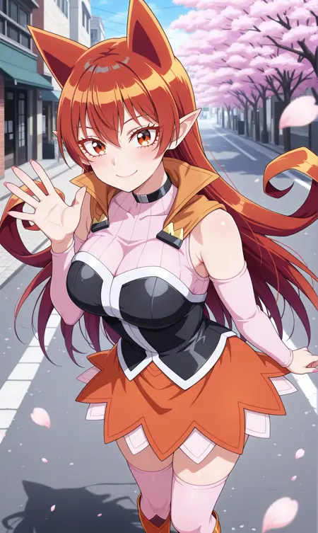 azazel ameri, 橙色头发,长发,橙色眼睛,头发角,项圈,尖耳朵,粉红色指甲,指甲
