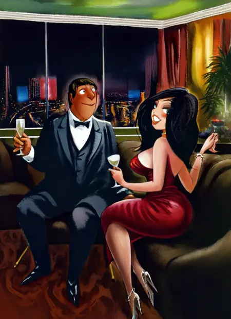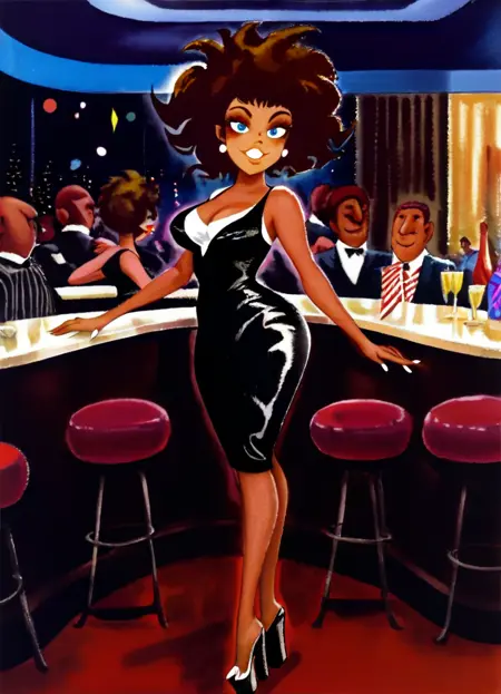 艾尔顿·德迪尼风格。一系列低分辨率作品可在此处查看:https://pipeandpjscomics.wordpress.com/category/eldon-dedini/。