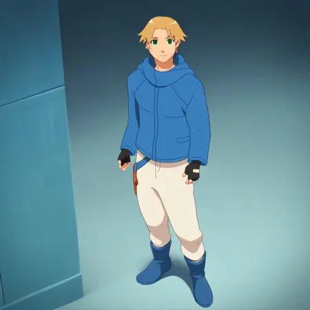 Coby, 1boy, solo, male focus, blonde hair, green eyes,