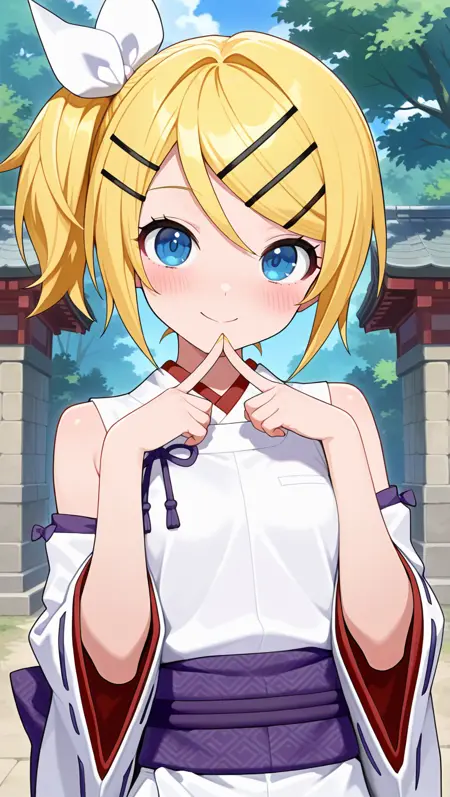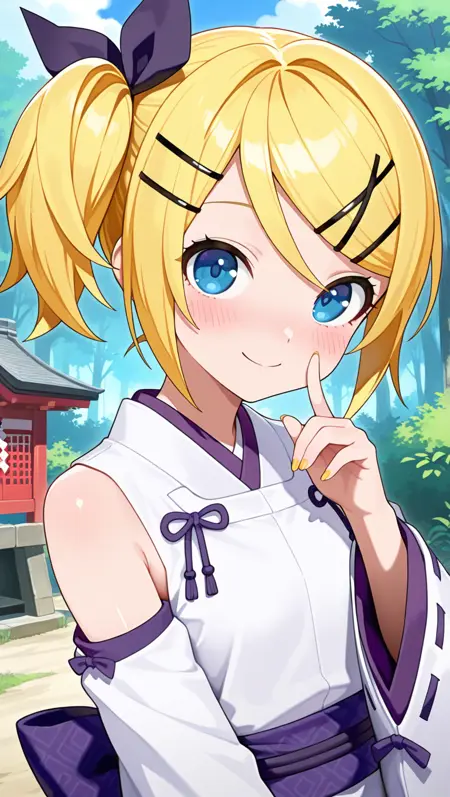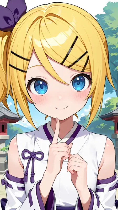 이것은 음악 소프트웨어 "Vocaloid"에 수록된 **Kagamine Rin [Raspberry]**입니다.