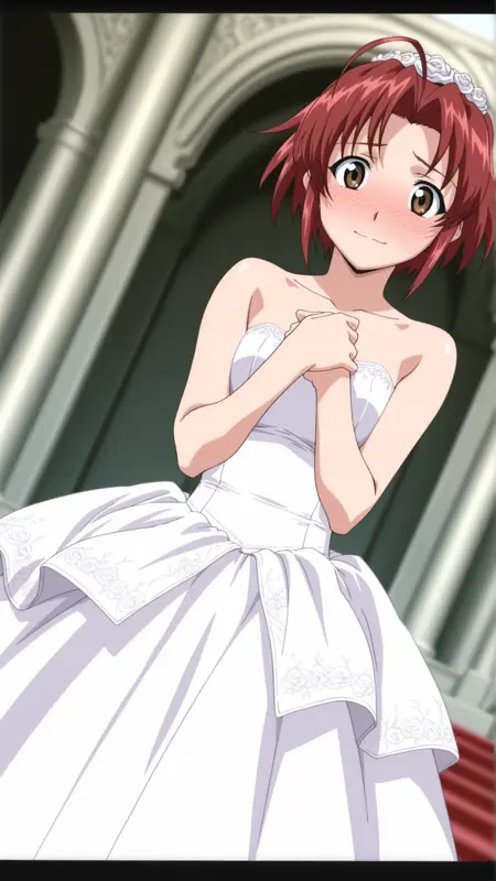 외모: 빨간 머리, 단발, 갈색 눈, 아호게,