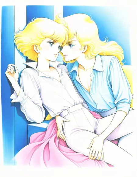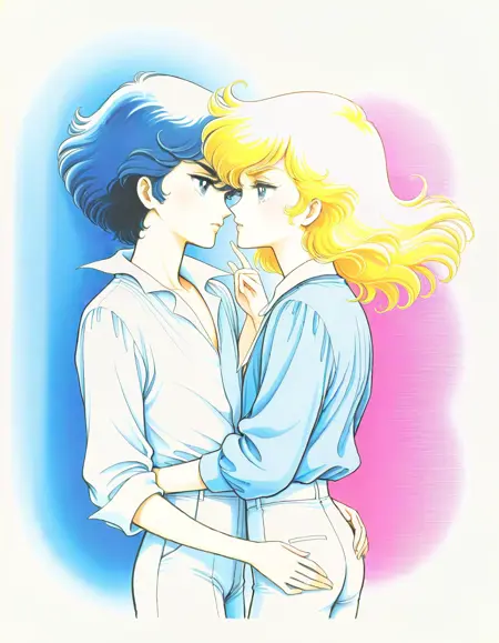 타케미야 케이코, 안드로지너스, 전통 매체, 1970년대 \(스타일\), 1소년, 2소년, 야오이, BL, Aoi, { 그레이스케일, 단색, | 부분 색상, | 하프톤, | 수채화 \(매체\), | 부드러운 색상, | 파스텔 톤, }