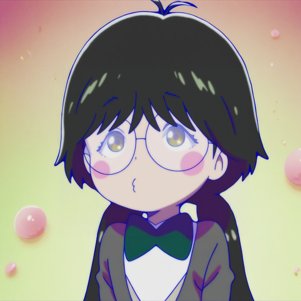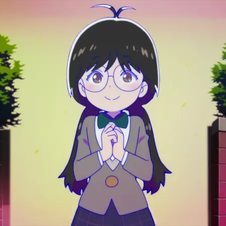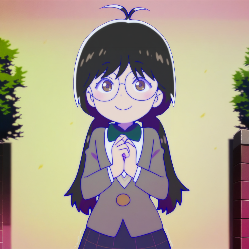 nozomi, 1girl, glasses, antenna hair, twintails,