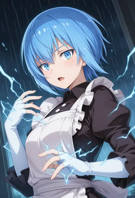 Trigger Words: rain (tensura), short hair, blue hair, blue eyes