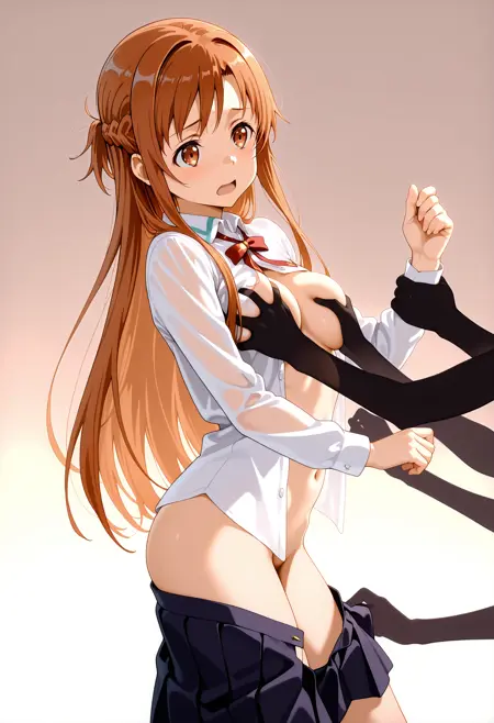 lora用于生成长阴影手臂,正在抓住女孩的身体。强度约0.8