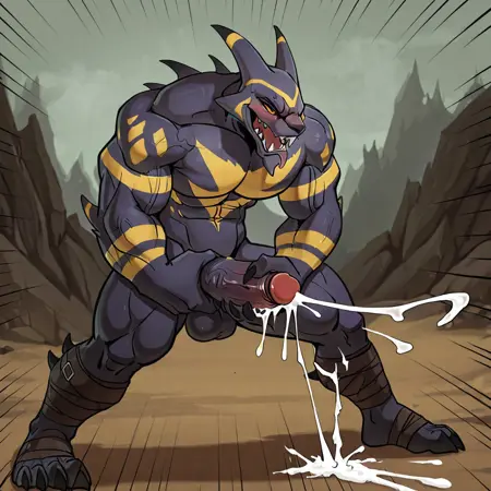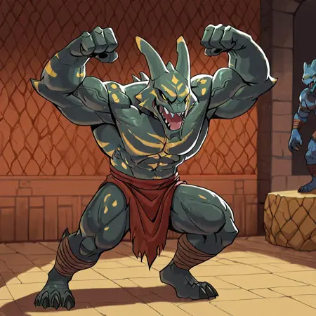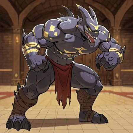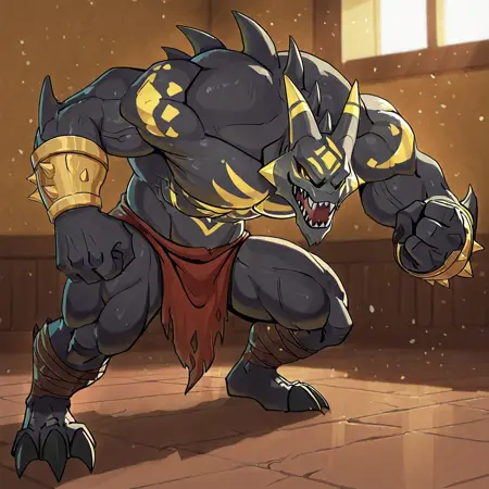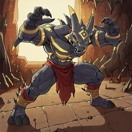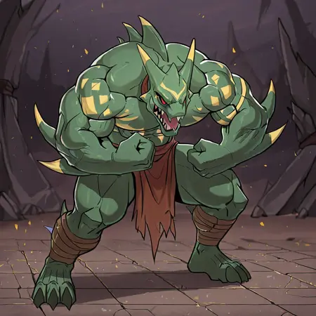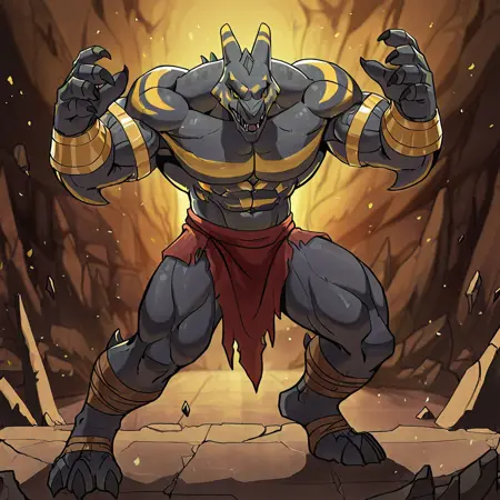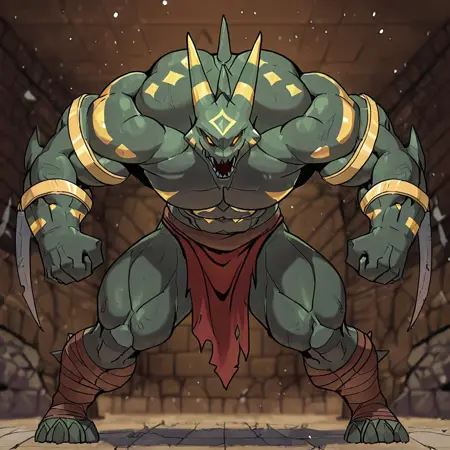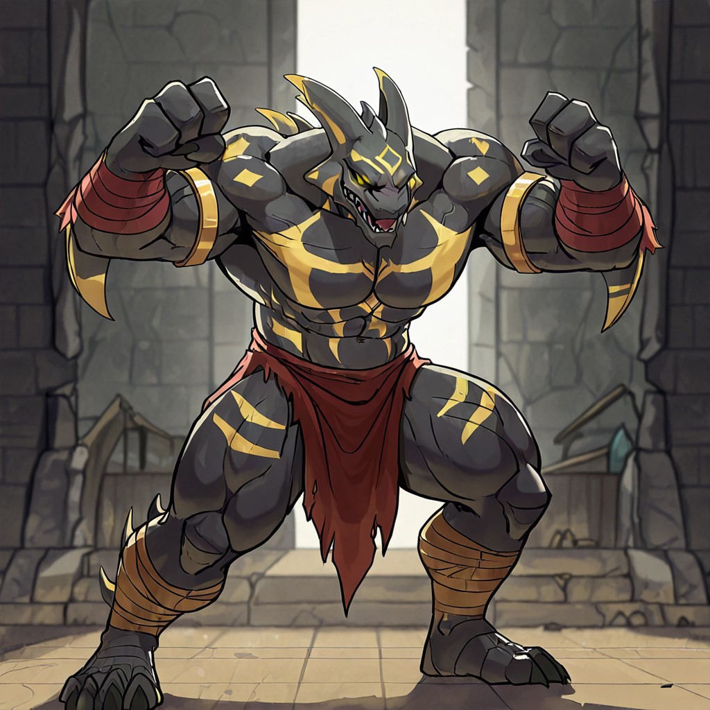 ◇aarbron, 남성, 근육질, 괴물, 발톱, 붕대, 허리띠, 황금색 눈, 세밀한 눈