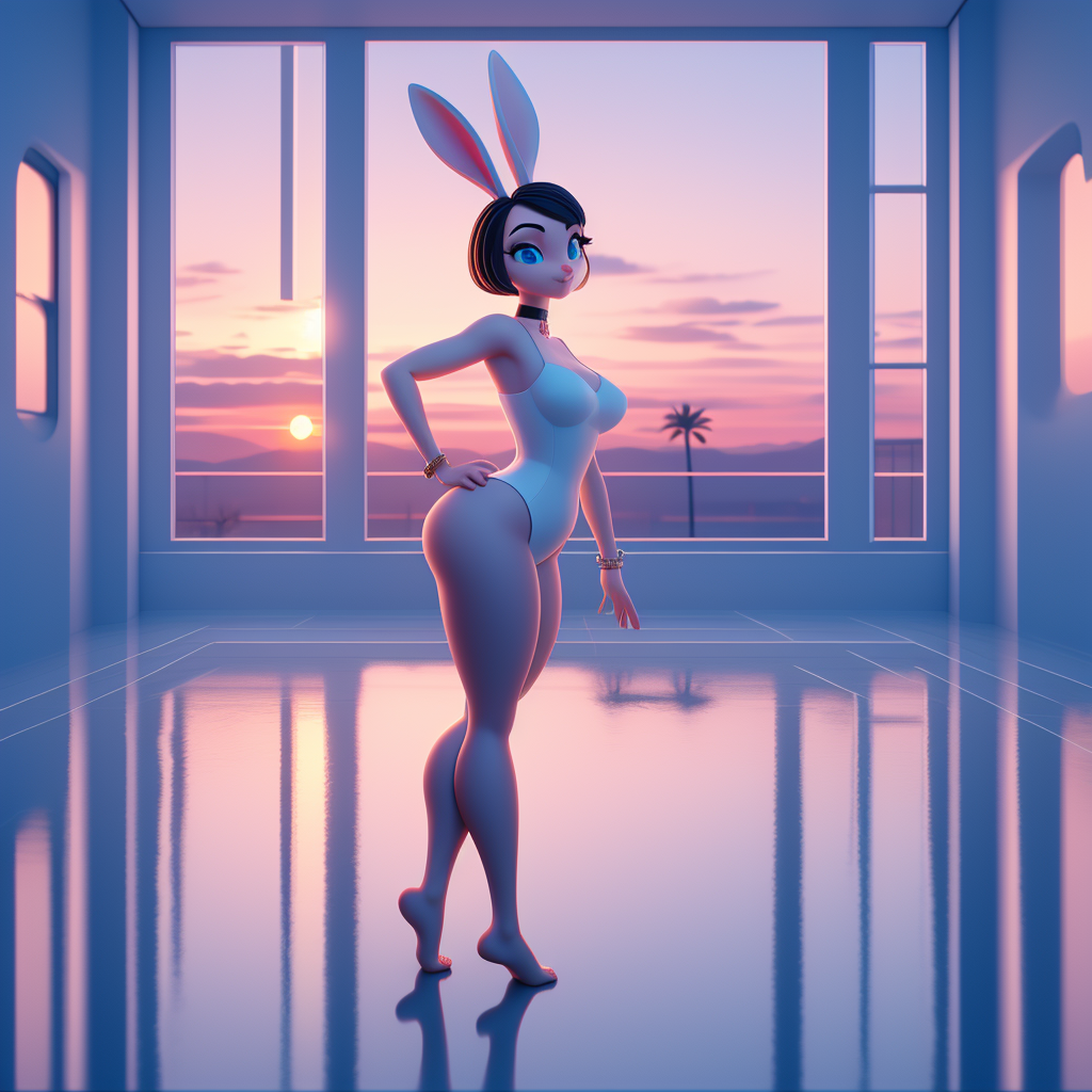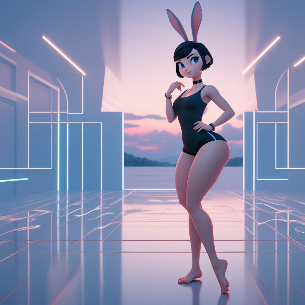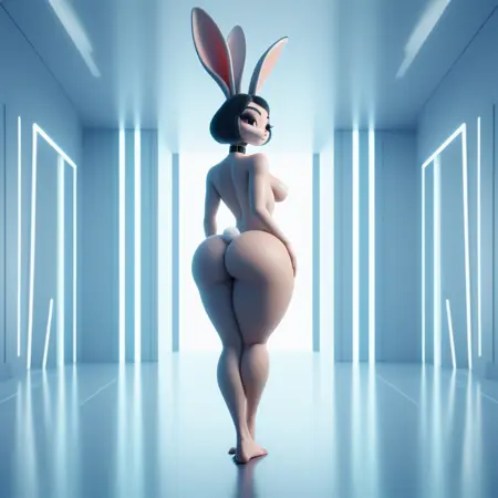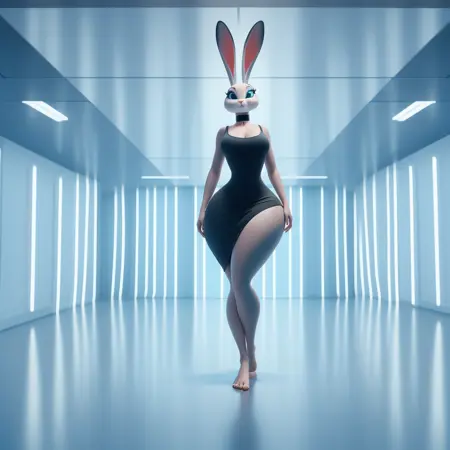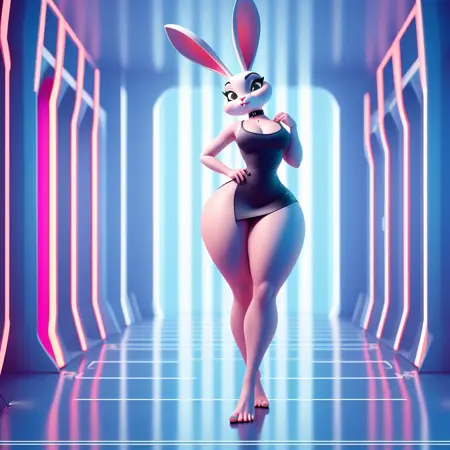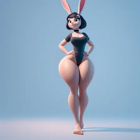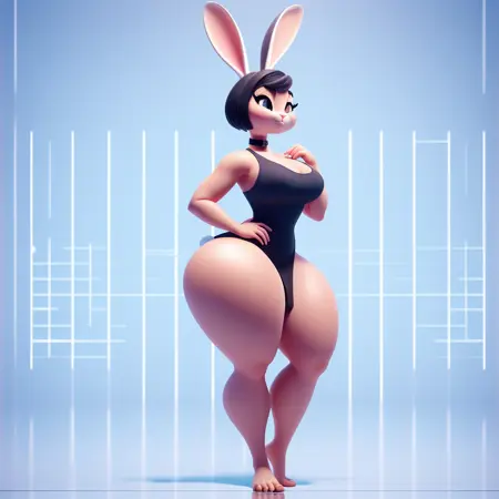 프롬프트 트리거: 인간형 여자 토끼, 과장된 체중 분포, 과장된 대퇴골