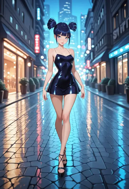 WCMus4, dark blue hair, short twintails, blue eyes
