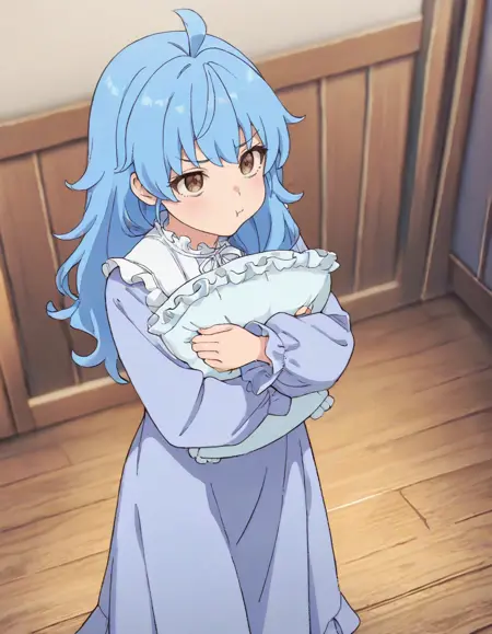 <lora:rain-aparida_s1-ixl-anime-soralz:1>, rain (aparida), 蓝色头发,长发,呆毛,棕色眼睛