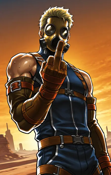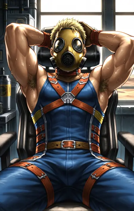 ffx_masked_al_bhed, blonde_hair, gas_mask, overalls, gloves, boots