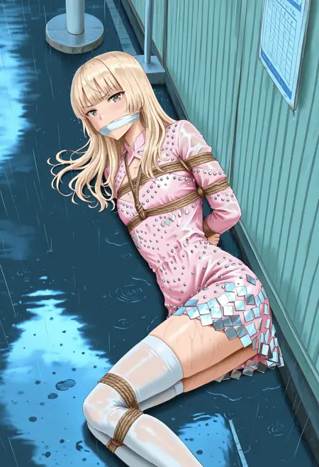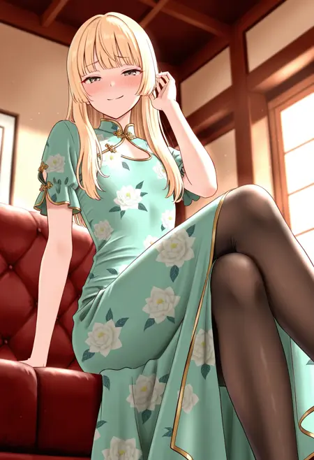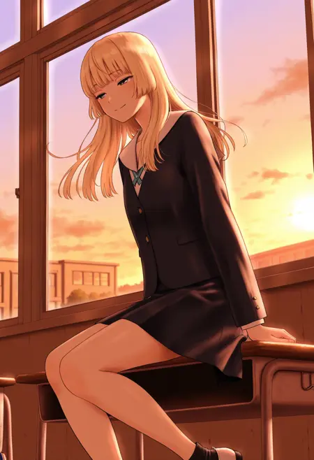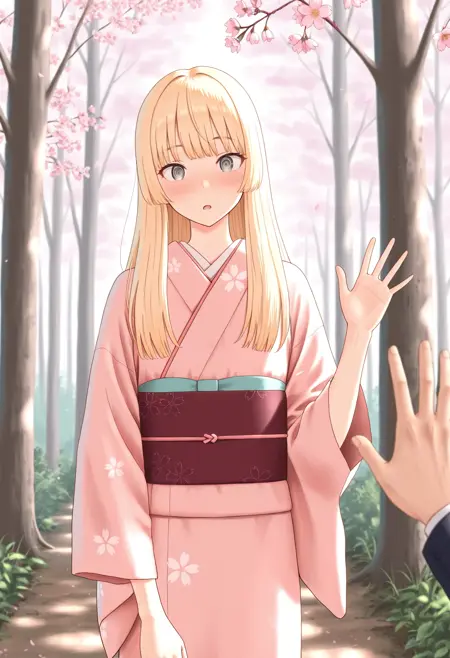 murodakey1, 1boy, trap, flat chest, long hair, hime cut, bangs, blonde hair, grey eyes,