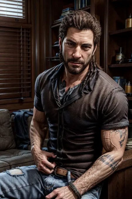 Douglas Reed is a man of action, a criminal and a heartstealer. A medium-level criminal, this musky daddy has seen prison, tough times and his son Gavin becoming a respected policeman in Detroit PD. His body has signs of his many lives: tattoos, dreadlocks, some soft wrinkles and a firm muscular build decorated with knife and bullet scars. What Douglas likes is the most is a bottle of iced beer, spicy nachos, the human played Super Bowl and maintaining the eye contact while pounding hard his partner in some cheap two-room apartment in the outskirts of Detroit.