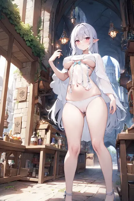 트리거 단어: white panties, lingerie, (jewelry:1.3), (see-through:1.3), cape,
