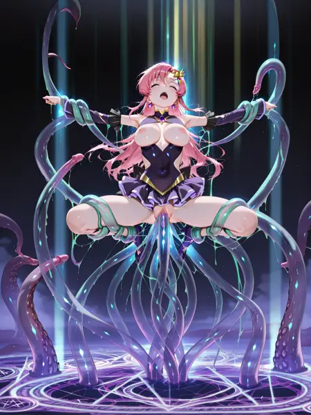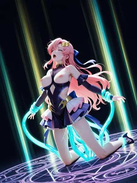 (lighrays_circle),magic circle,magic circle on floor,lighrays_circle ,light ray,raibow lightrays,(multiple lightrays:1.),glowing circle,(lightray close to her body:1.),