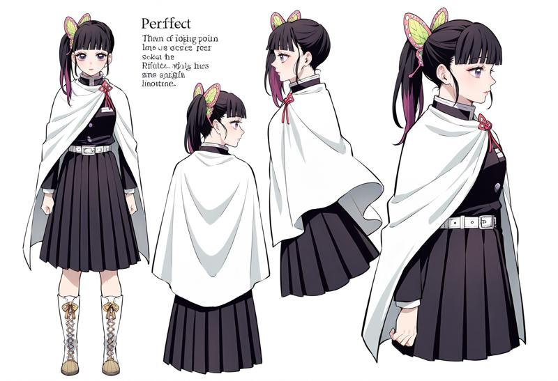 Full Uniform: demon slayer uniform,skirt,white footwear,boots,white cape,cape,pleated skirt,long sleeves,belt,cross-laced footwear,knee boots,lace-up boots,jacket,white belt,ribbon,miniskirt,black skirt,belt buckle,buckle,shiny hair,pink cape,uniform,cloak,red ribbon,black jacket,medium skirt,military jacket,white cloak,grey cape,capelet