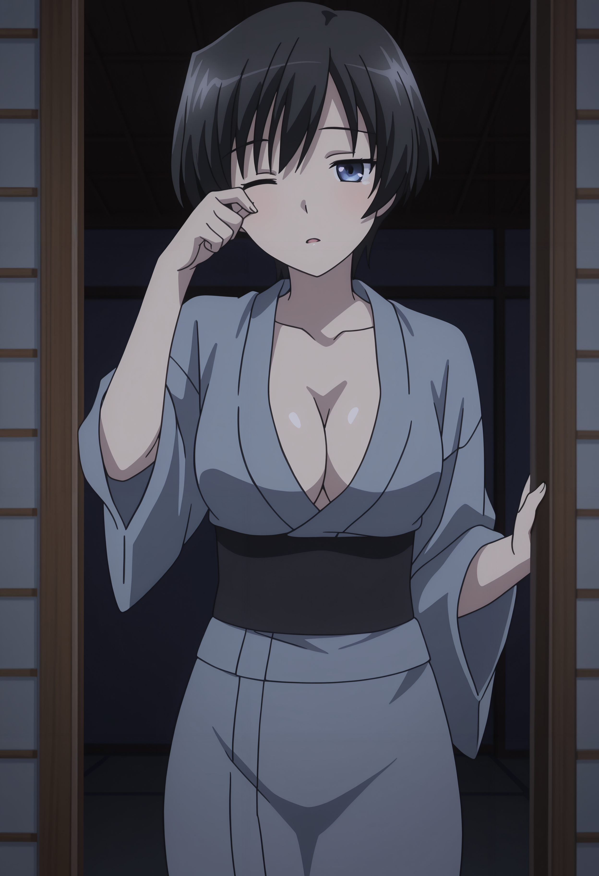 bbprinc_mizore、短い髪、黒髪、青い目、