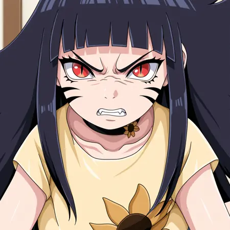 | Trained Words | himawari, 1girl, blue eyes, black hair, long hair, bangs, blunt bangs, whisker markings,Copied! sunflower choker, yellow cropped shirt, sunflower print, midriff, baggy pants, blue pants, belt, bracelet,Copied! blue bikini, frilled bikini, bikini skirt, hair flower, thigh strap,Copied! red eyes, slit pupils, facial mark, prehensile hair,Copied! |