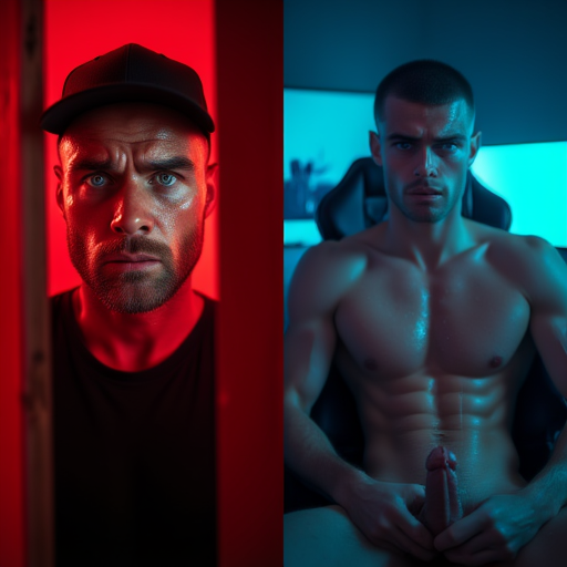 男性が別の男性が自慰しているところを捕まえる画像を作成する