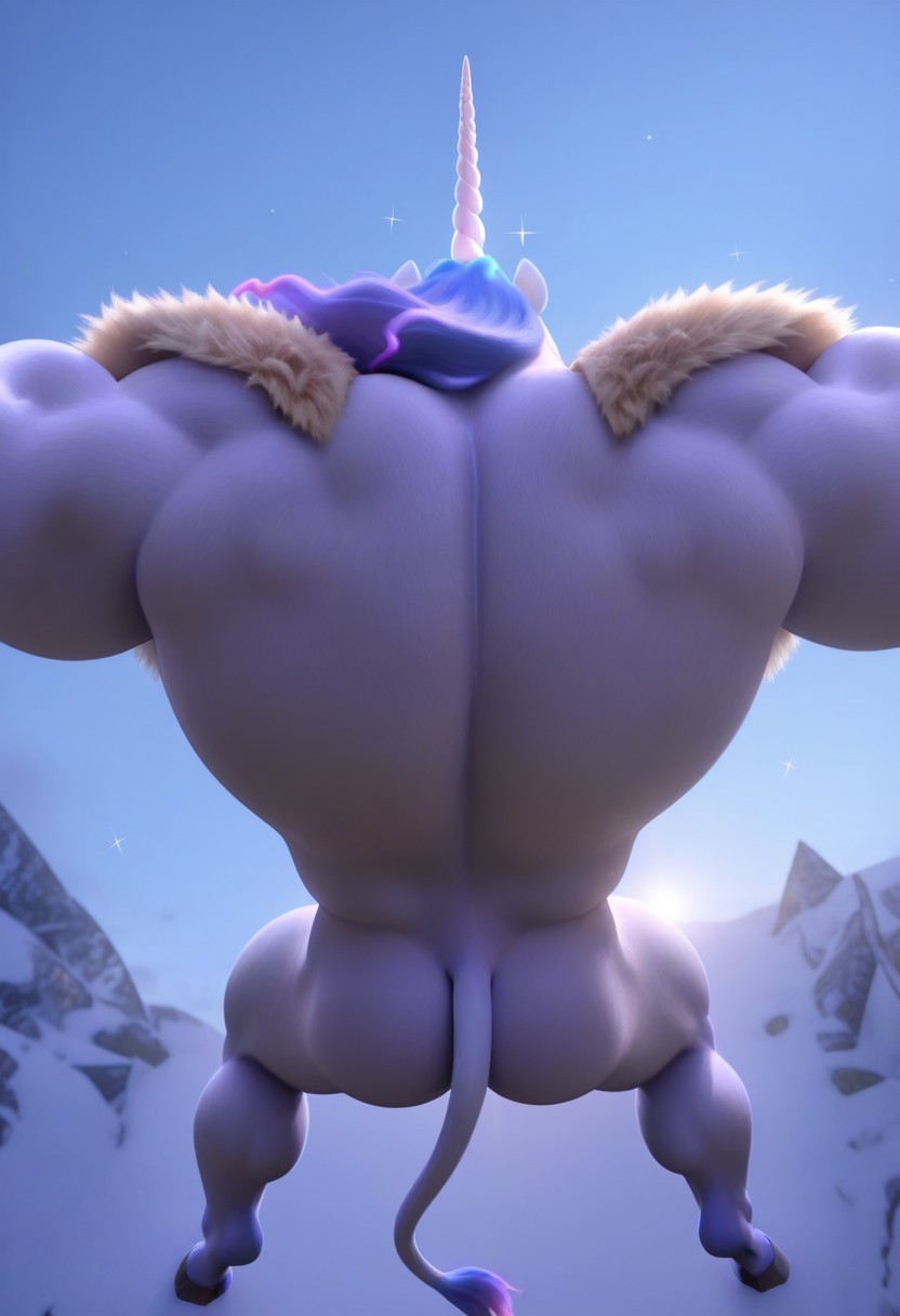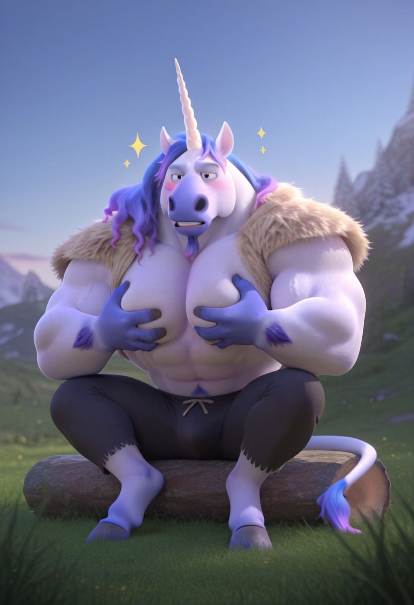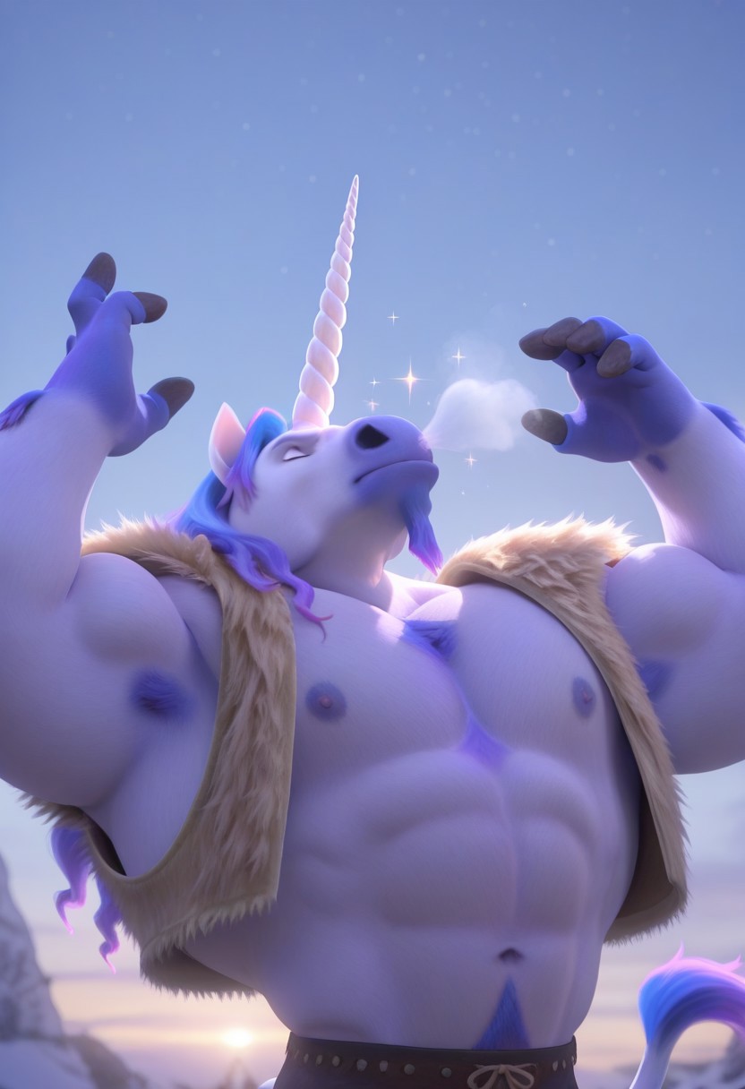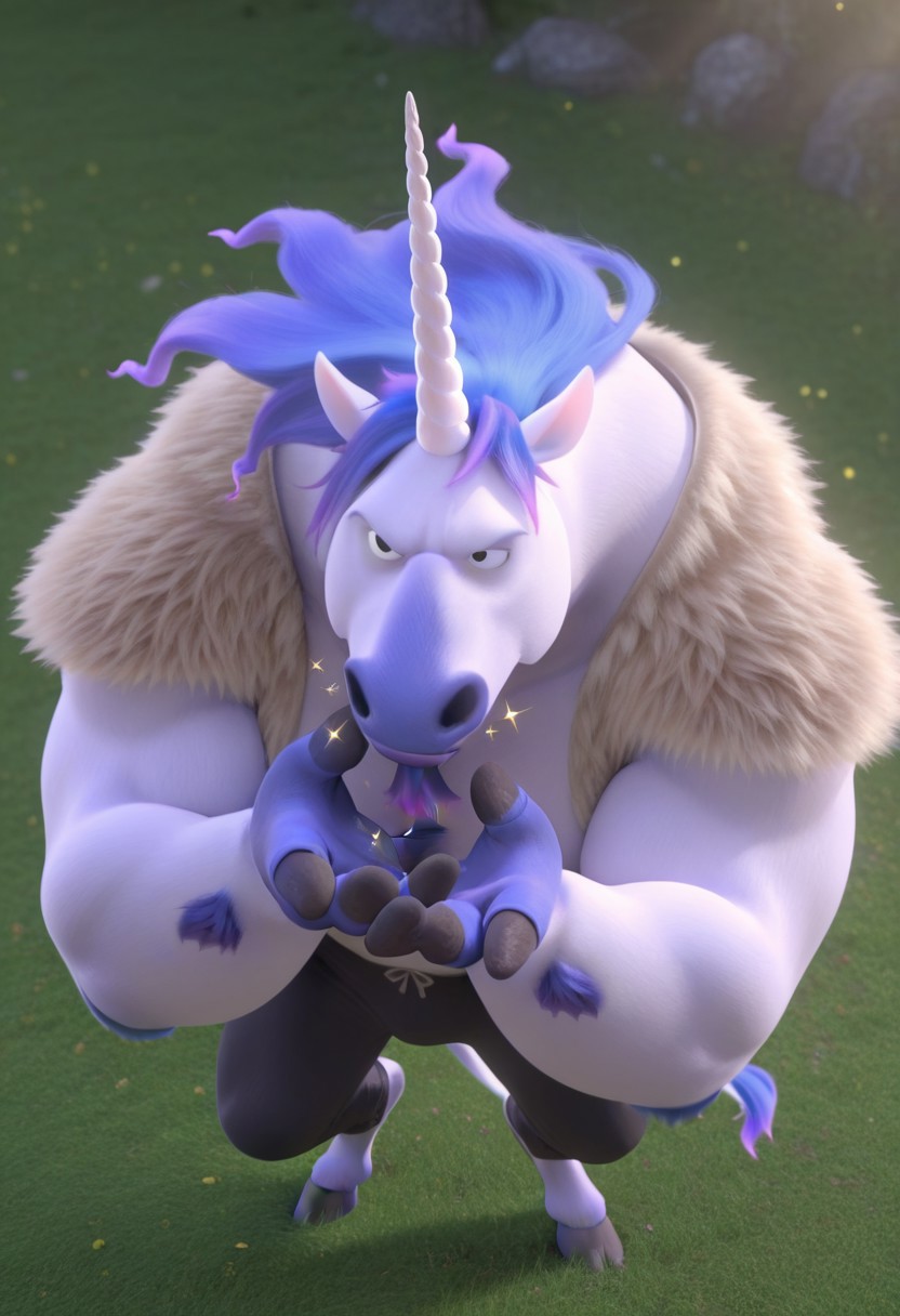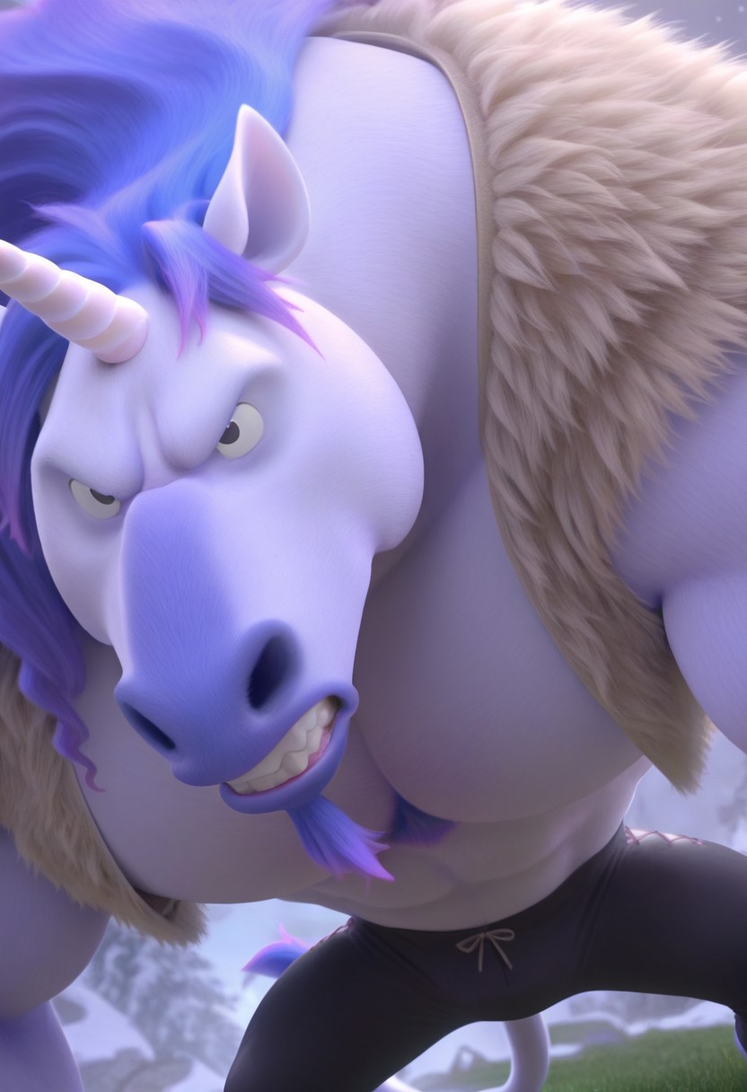 강화 프롬프트: "unicorn, tail, furry, black eyes, single horn, muscular, manly, bara, large pectorals"
