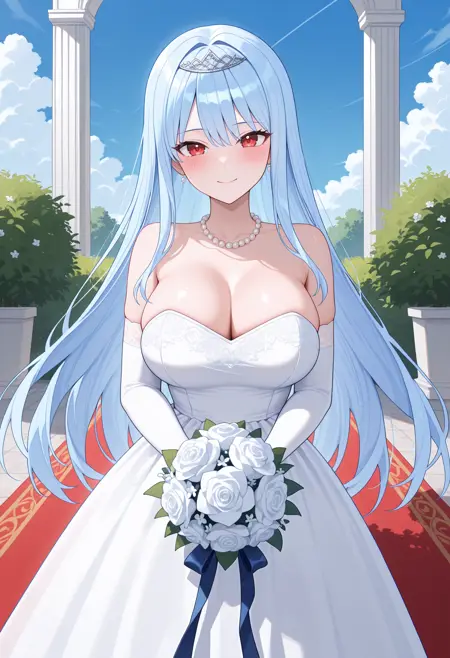dwhiori, 浅蓝色头发,长发及地,红眼睛,大乳房,