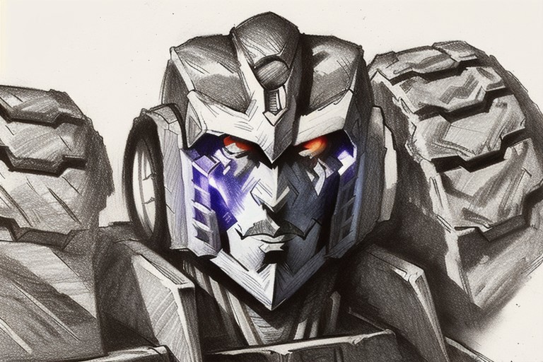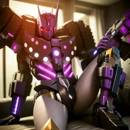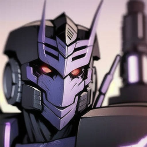 Other prompts : red eyes,no humans, mecha, bulky, glowing eyes, decepticon, decepticon mask