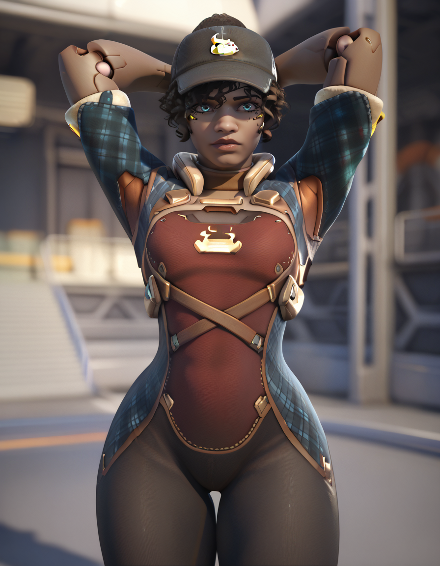 barista sojourn, sojourn (overwatch) , bodysuit , android