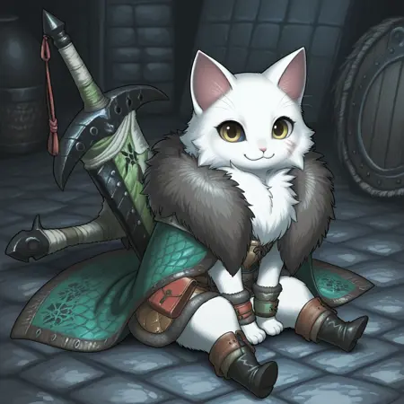 你可以通过添加标签 monster hunter wilds, 3d, videogame 让她和整体艺术风格更接近游戏原作。你也可以通过标注艺术家、整体风格或使用风格LoRA来让图像采用任何你喜欢的风格。希望你喜欢!^w^