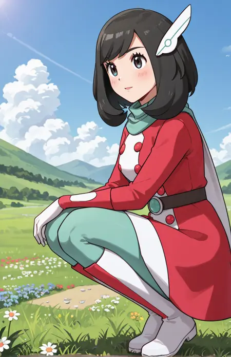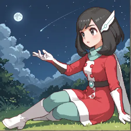 scselene, selene \(pokemon\), grey eyes, black hair, bangs, medium hair