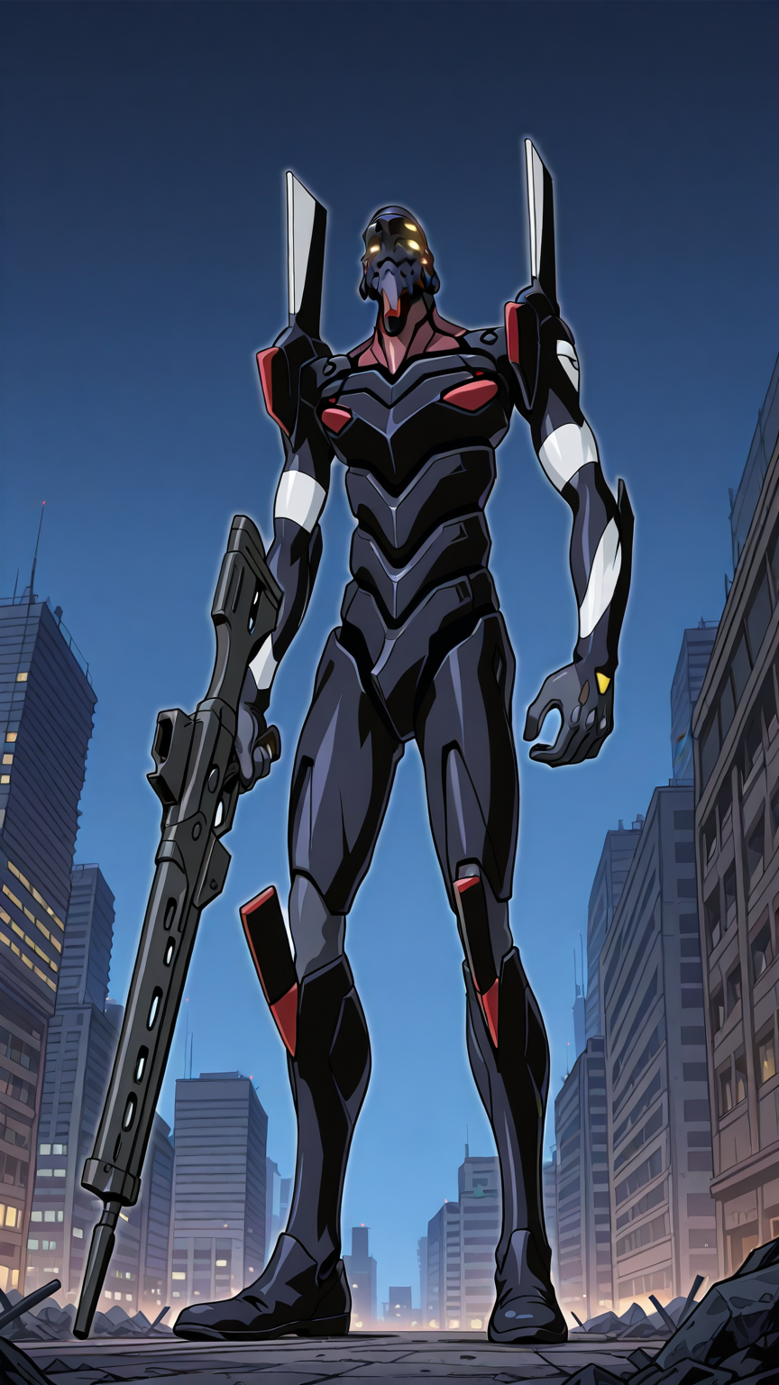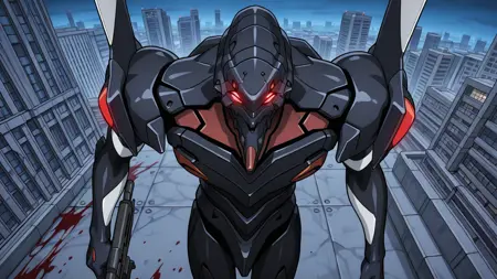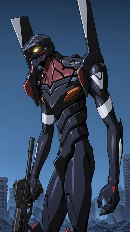 EVA03, evangelion unit, cyborg, Black armor, leg armor, arm armor, shoulder pylon armor,