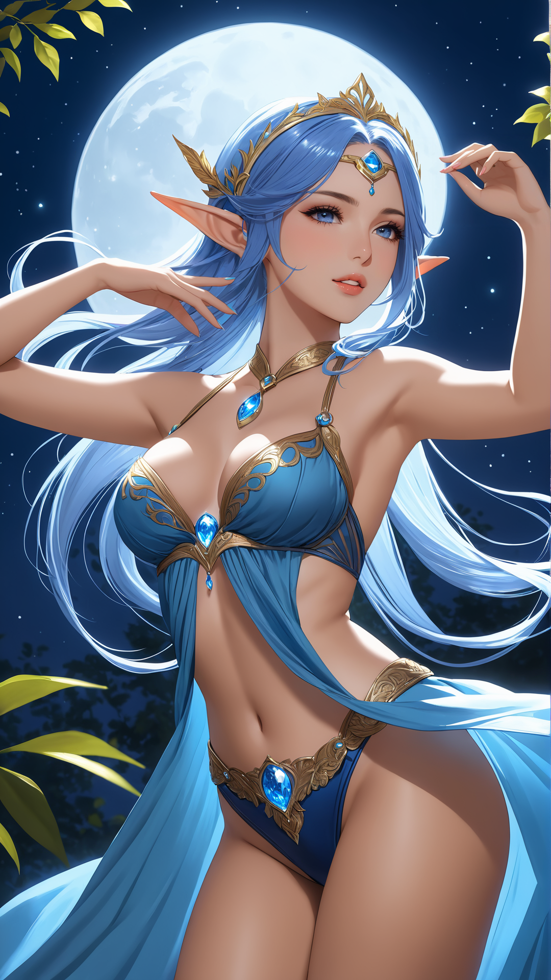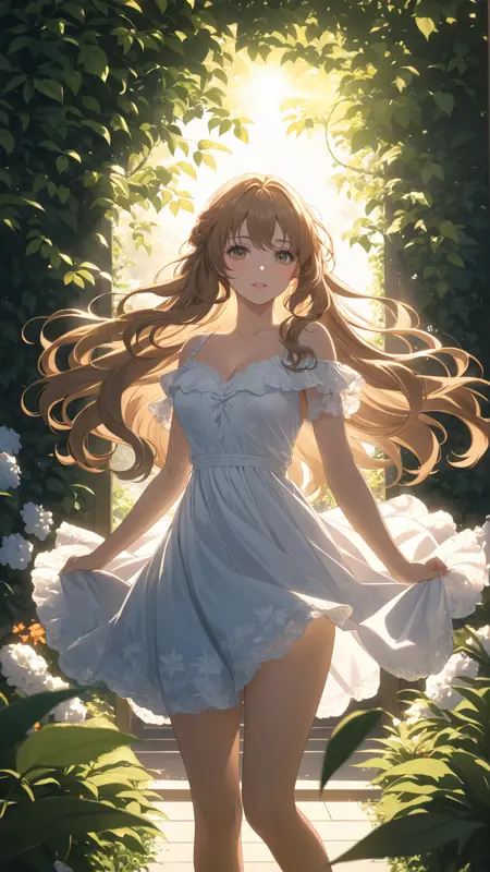 masterpiece, best quality, 1girl, long flowing hair, vibrant eyes, dynamic pose, anime face, detailed outfit, full body, fantasy setting, glowing particles, (anime style), cinematic lighting