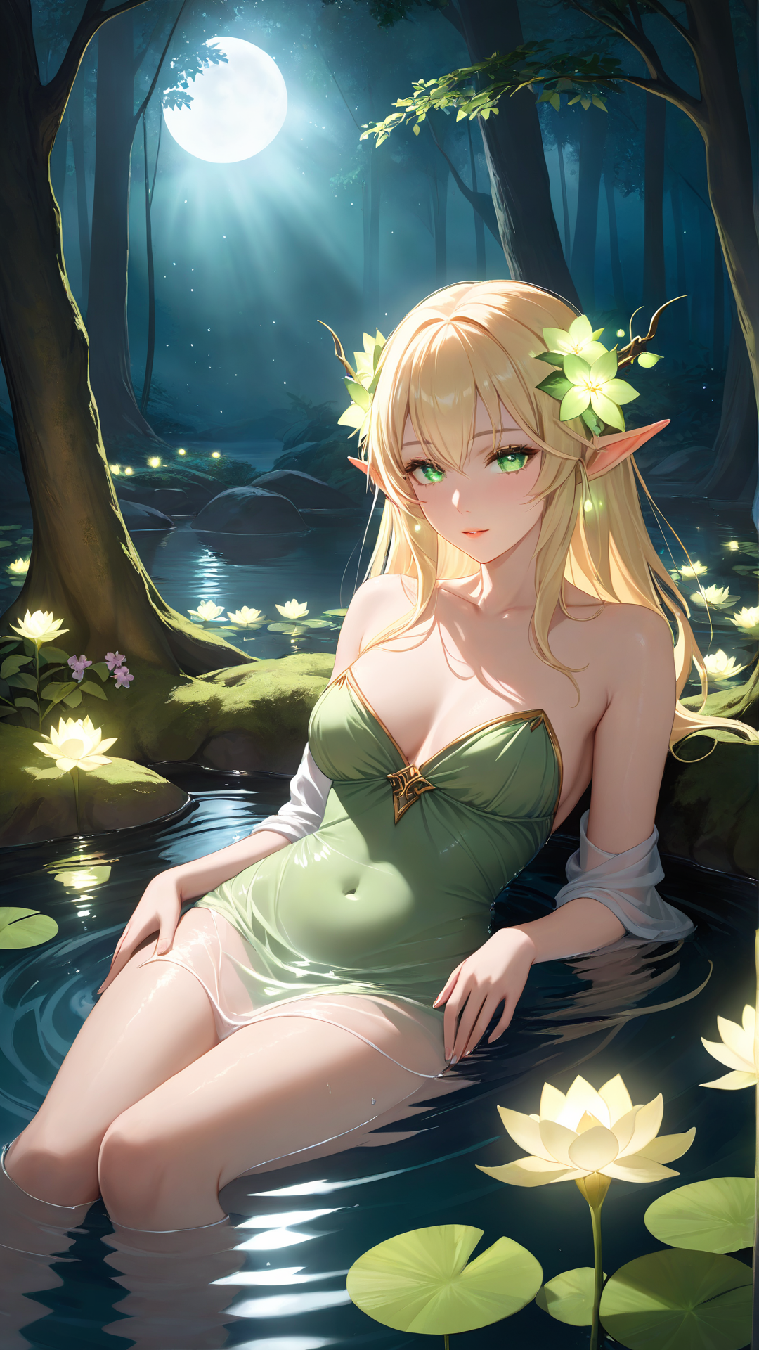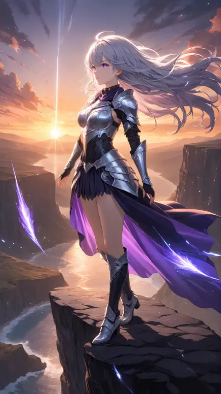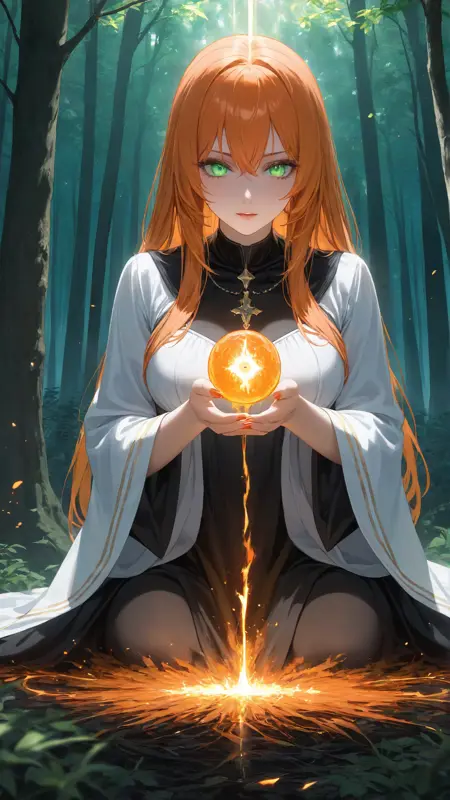masterpiece, best quality, 1girl, long flowing hair, vibrant eyes, dynamic pose, anime face, detailed outfit, full body, fantasy setting, glowing particles, (anime style), cinematic lighting