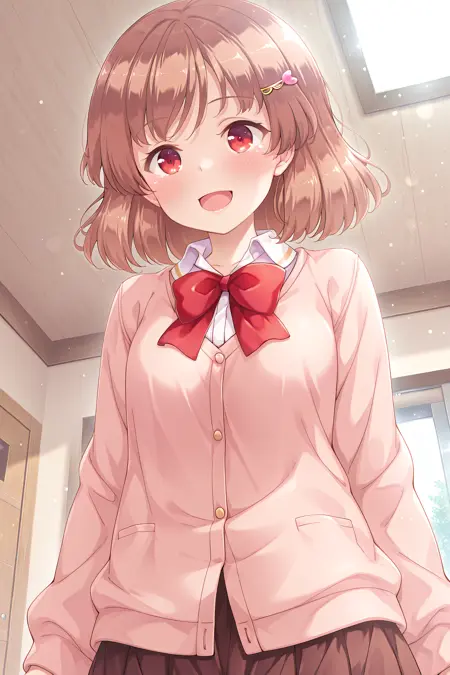 | 训练词汇 | Nao Watarai,red_eyes, brown_hair, bangs,已复制! skirt, shirt, long_sleeves, bow, school_uniform, white_shirt, pleated_skirt, collared_shirt, miniskirt, bowtie, frilled_skirt, red_bow, sleeves_past_wrists, cardigan, red_bowtie, brown_skirt, pink_cardigan,已复制! white_socks, kneehighs, socks, loafers, shoes, brown_footwear,已复制! |