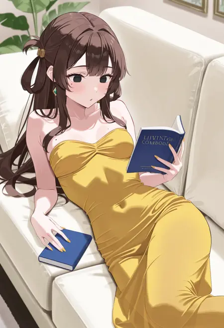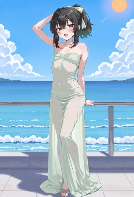 Triggered words: festivalqueen123dress, mesh dress, long dress, see-through dress, strapless dress, bare shoulders, sleeveless dress, covered legs,