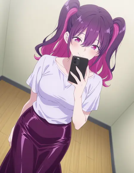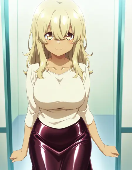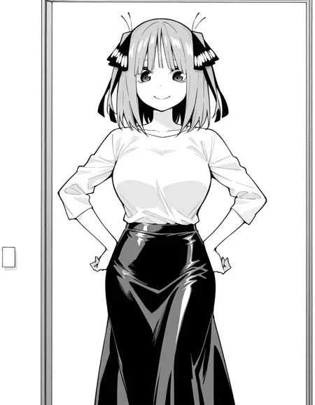 lora:satin-skirt-illustriousxl-lora-nochekaiser:1, satin skirt, satin, long skirt, shiny clothes, solo