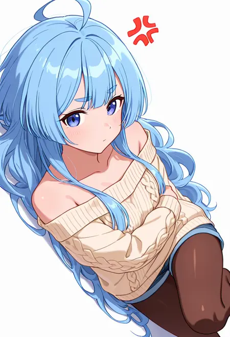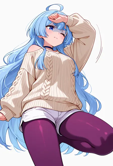 seiha_cnr, 1girl, blue hair,very long hair, bangs, ahoge, thick eyebrows,