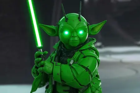 "white body parts":より洗練され、公式なスタイルの外観に"retained pose":元のポーズを維持"blue glowing eyes"または"orange chest light":視覚的な詳細を調整