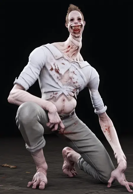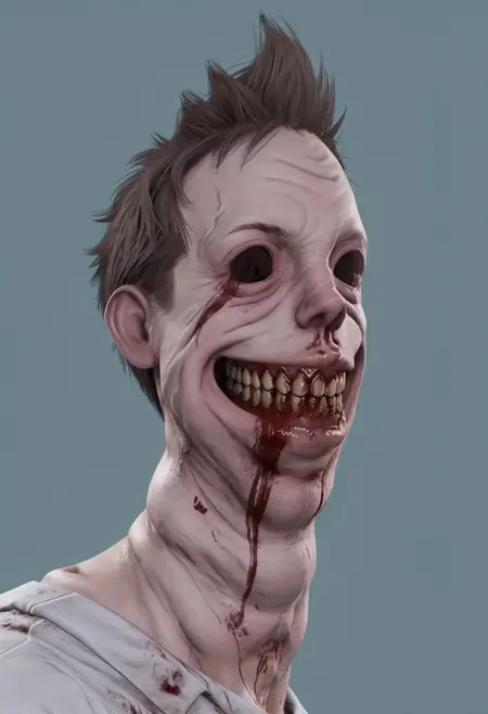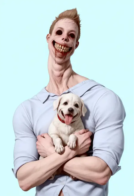 ukilf, monster, teeth, shirt, pants, short hair, blood,