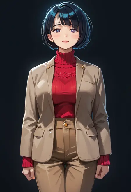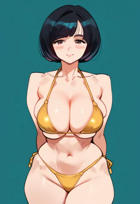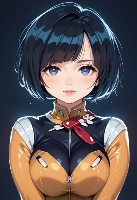 トリガー:シイコ、短髪、黒髪、ボブカット、大きな胸、ボディスーツ、手袋