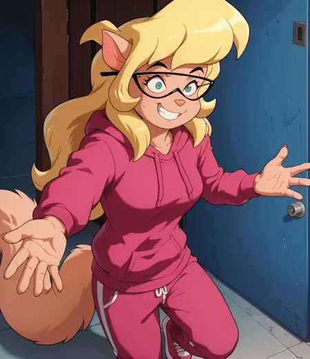 Callie_BriggsSWCT, glasses, blond hair, long hair, green eyes, furry, anthro, tail,