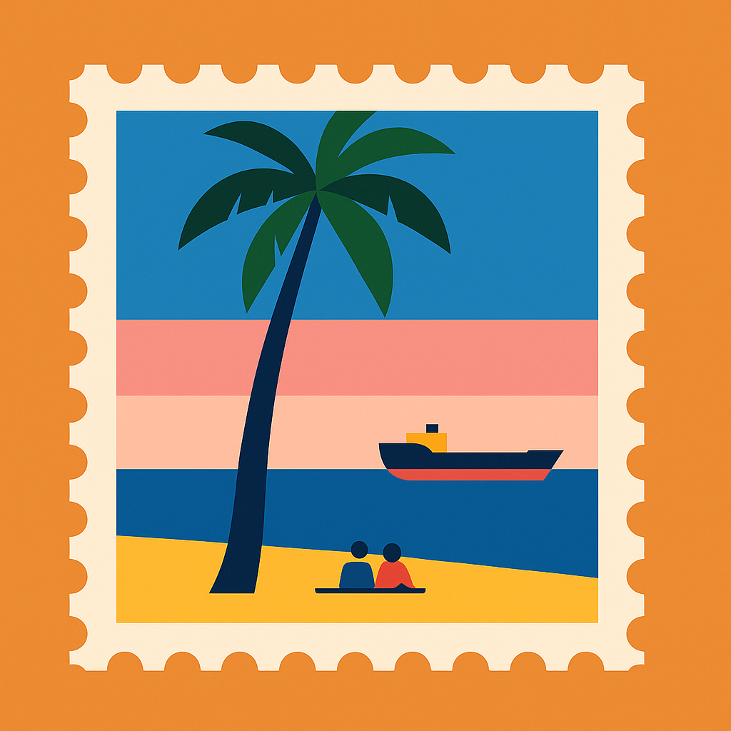 旅行写真をフラットデザインのスタンプイラストに簡単に変換できます。最適な結果を得るには、1:1の正方形形式をご使用ください。
