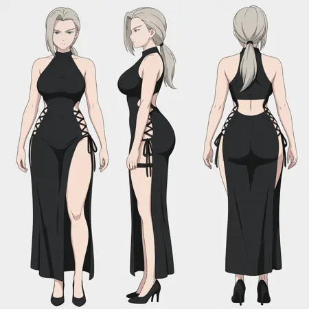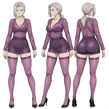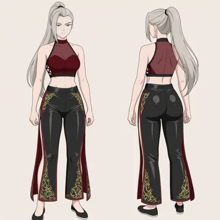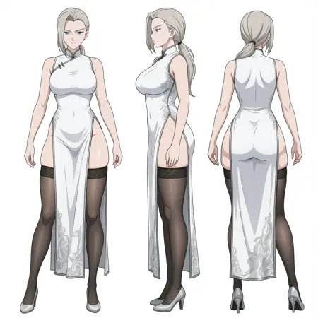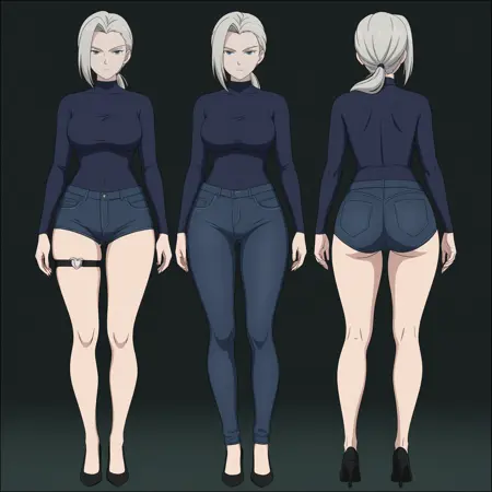 seniorluye, 성숙한 여성, 1소녀, 1소녀, 장갑, 혼자, 손가락 없는 장갑, 부츠, 바지, 검은 장갑, 파란 눈, 긴 머리, 언더머리, 흰 바지, 뒤를 돌아보며, 재킷, 후드, 전체 신체, 벨트, 케이블, 뒤에서, 파우치, 시청자 바라보기, 후드 내려짐, 검은 신발, 회색 머리, 파란 재킷, 주머니, 파란 재킷 흰 바지 파란 목걸이 흰 셔츠